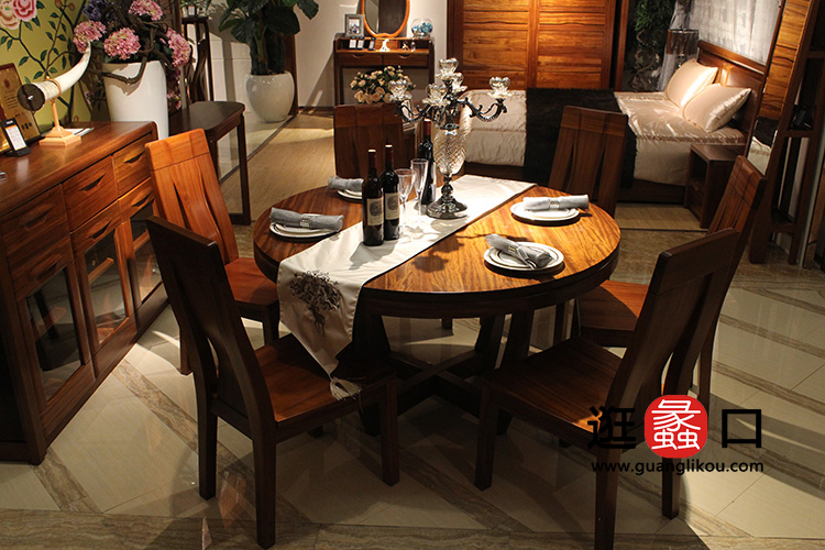 亨德利家居中式古典餐厅实木餐桌椅 型号:D1001圆桌椅