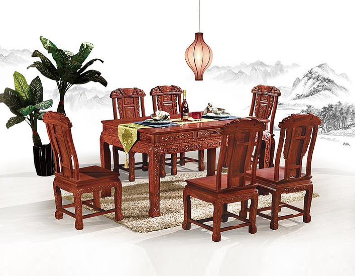 尚品红木中式古典餐厅红木餐桌椅(一桌六椅)