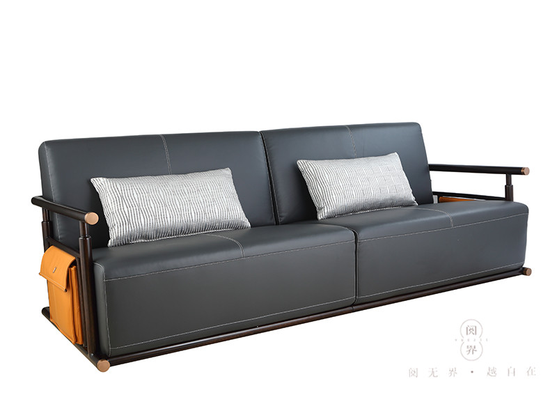 阅界新中式家具新中式客厅黄檀实木时尚皮质软包沙发