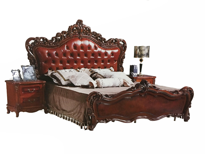 帝雅轩妮家具欧式卧室实木雕花皮质奢华双人床3017#/床头柜