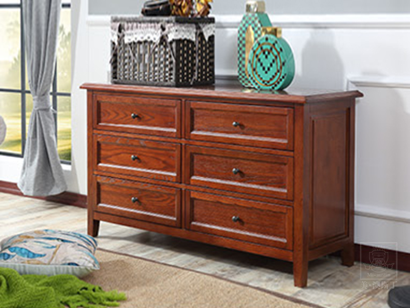 美澳斯丁家具美式客厅白蜡木实木直腿矮七斗柜5403