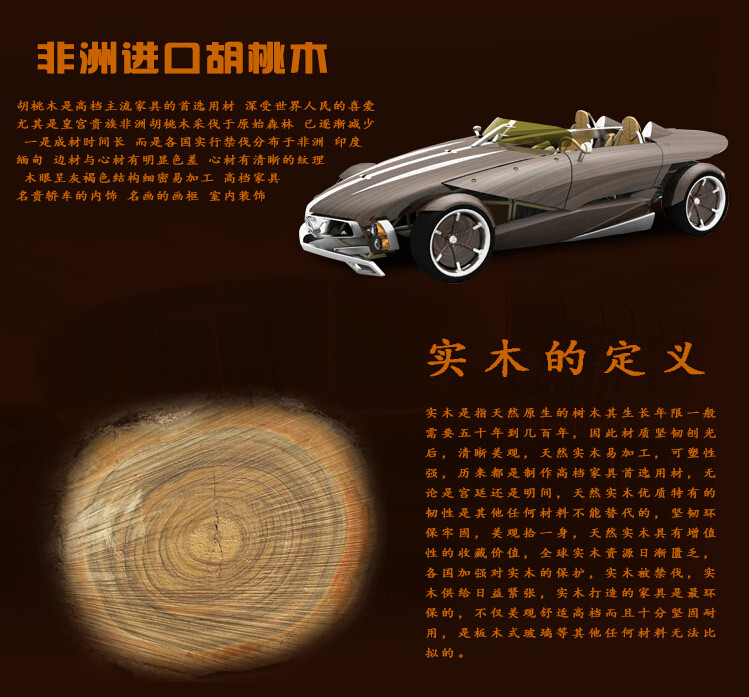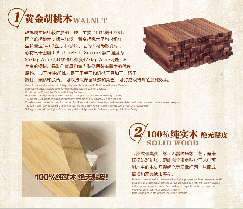 1.主材采用优质非洲进口黄金胡桃木,精心挑选烘干后制作家具